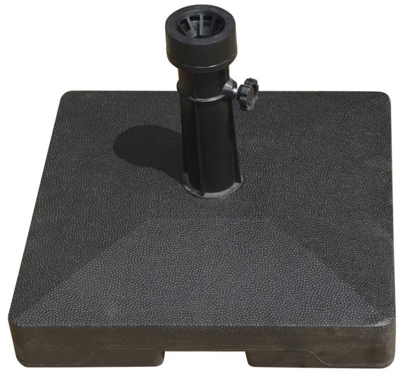 Čtvercový betonový podstavec pro slunečník.