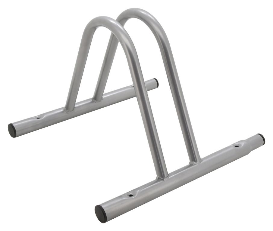 Celokovová konstrukce s šedostříbrným povrchem je opatřena trubkami o průměru 20 mm (vrchní část) a 30 mm (základnová část) zajišťuje bezpečné umístění kol. Díky zúženému zakončení je možné spojovat více stojanů dohromady pouhým vsunutím, tím je umožněno rozšířit použití i pro více kol. Stojan je vhodné připevnit do země pomocí vrutů (nejsou součástí balení).
