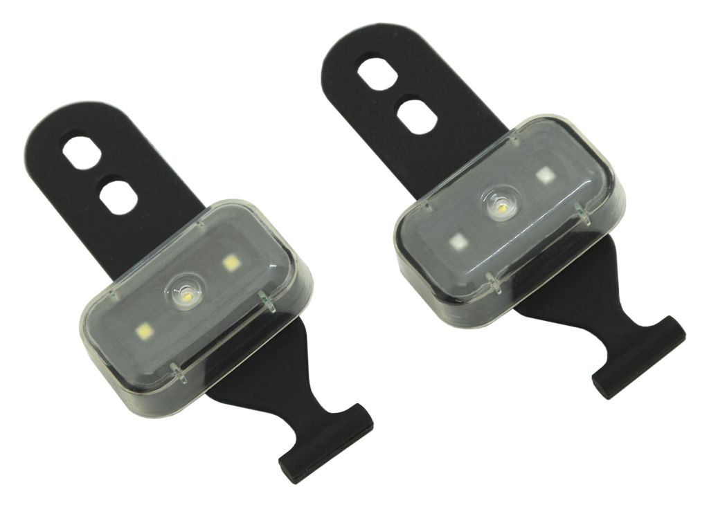 Svítilna na kolo, kočárek, či koloběžku s jednoduchým systémem upevnění pomocí pružných silikonových objímek s přezkami. Lze snadno připevnit např. na řidítka, tyč pod sedlem, či jinou část jízdního kola. Lze použít na řidítka s různými průměry. Světlo je pomocí přezek možné upevnit i na opasek. Sada je složena ze dvou kusů, kdy jedno světo je bílé a jedno červené, každé světlo je opatřeno dvěma LED. Napájení je řešeno bateriemi CR2032.