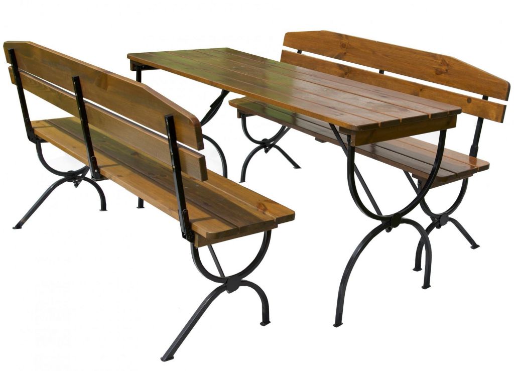 Set je vyrobený z borovicového dřeva s kovovou podnoží. Lakovaný povrch zaručuje ochranu a delší životnosti dřeva. Velkou výhodou tohoto setu je možnost složení podnože, díky tomu ho lze jednoduše uložit či převážet. Certifikát FSC zaručuje, že použité dřevo pochází ze šetrně obhospodařovaných lesů, ve kterých jsou dodržovány přísné ekologické a sociální požadavky.