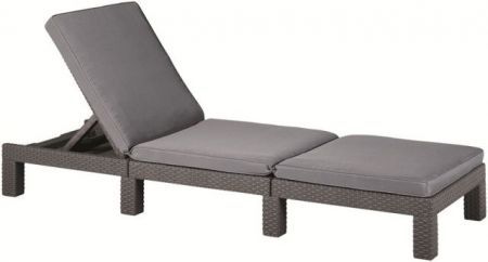 Zahradní lehátko DAYTONA v barvě grafit s šedýmipoduškami. Je vyrobeno z lisovaného plastu – umělého plochého ratanu. Lehátko je vhodné na zahradu,terasu nebo k bazénu. Největší výhodou tohoto materiáluje jednoduchá údržba, odolnost a dlouhá životnost.