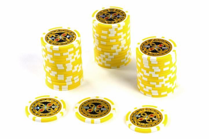 Žetony se snadno drží a vaše sázka nebo výhra se snáze skládá jednou rukou. Žetony jsou také velmi dobré pro triky s žetony. Vysoce reflexní mince má kovové jádro o váze žetonu 12 gramů, což odpovídá váze běžných žetonů v kasinech. Díky nápadným barvám a odpovídajícímu označení hodnoty můžete mít přehled o věcech během vzrušující hry pokeru.