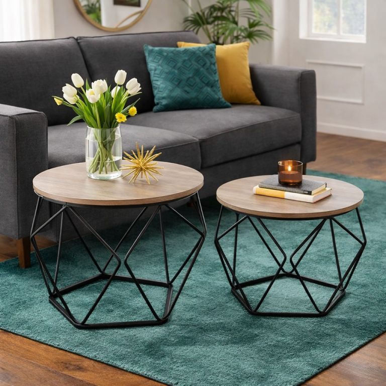 Oživte svůj interiér stylovou sadou konferenčních stolků v industriálním vintage stylu. Tyto kulaté stolky v kombinaci dřeva a černé oceli dodají vašemu domovu osobitý šmrnc a stanou se středobodem každého obývacího pokoje. Využijete je na odpolední kávu, dekorace nebo jako praktický odkládací prostor pro notebook.