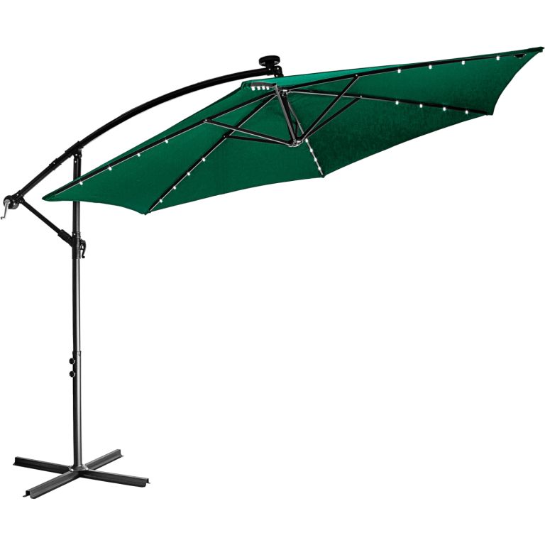Náš slunečník lze pohodlně otevřít a zavřít pomocí ruční kliky. Optimální stín získáte díky nastavitelnému úhlu slunečníku a otočnému rameni do všech stran. Slunečník poskytuje ochranu před slunečními paprsky, cirkulaci vzduchu podporuje integrovaná stříška, která zabraňuje hromadění tepla. Vodoodpudivý potah navíc poskytuje ochranu proti mírnému dešti. Osvětlení LED lze ovládat integrovaným vypínačem.