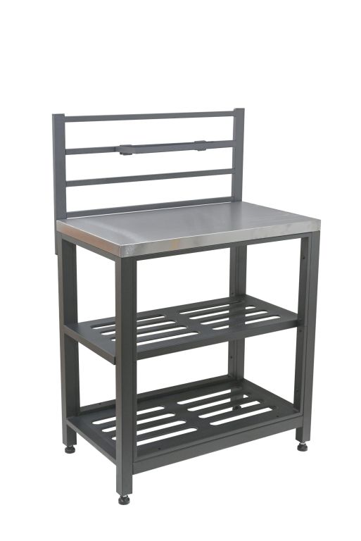 Modul je konstruován z oceli s kvalitní povrchovou úpravou černé barvy. Celkové rozměry 80 x 46,5(+2) x 123 cm. Vrchní, pracovní část, je tvořena z leštěné nerezové oceli a nabízí plochu o rozměrech 80 x 46,5 cm. Pracovní deska je umístěna ve výšce 87 cm. Součástí tohoto modulu je drobná polička ve vrchní části s rozměry 42 x 14,5 cm a rovněž dvě rozměrné poličky ve spodní části ve výšce 14,5 a 50,5 cm od země. Nohy konstrukce jsou opatřeny šroubovacím zakončením pro snadné nastavení na nerovném povrchu. Sada TORINO dohromady tvoří ideální venkovní kuchyň pro pohodlné grilování a zpříjemnění pobytu na zahradě.