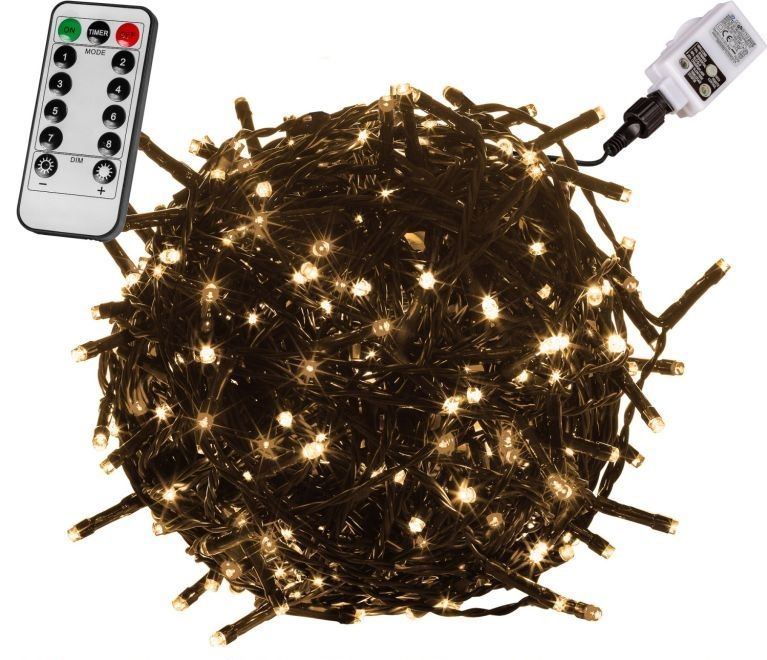 VOLTRONIC Vánoční řetěz 20 m, 200 LED, teple bílé, ovladač