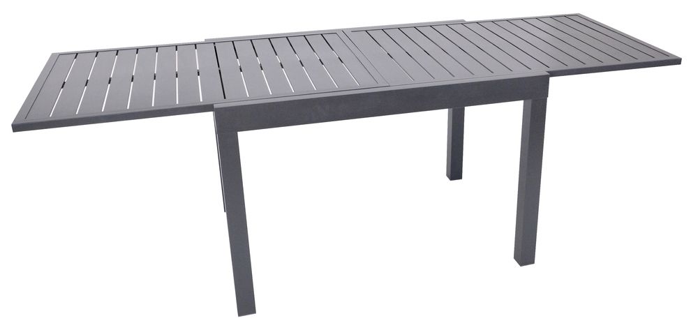 Hliníkový stůl v černém provedení, který je rozkládací. Moderní stůl, který skvěle zapadne do každého exteriéru či interiéru. Stůl má díky použitým materiálům a modernímu vzhledu opravdu široké využití, je vhodný pro vnitřní i venkovní prostory – zahrady, terasy, zimní zahrady nebo třeba do uvítací haly či recepce. Díky jednoduché montáži, budete moci již po chvíli stůl naplno využít. Jednoduchý je i mechanismus rozložení.