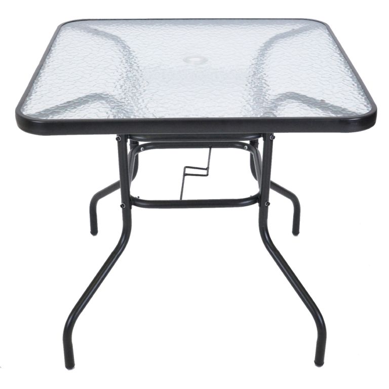 Zahradní stůl ZWMT, 80 x 80 cm, kovový se skleněnou deskou